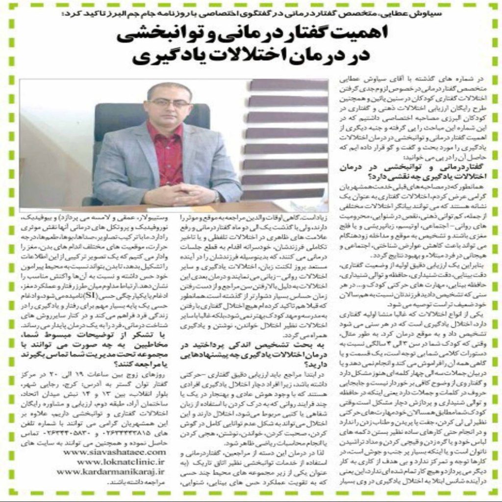 دکتر گفتاردرمانی کرج : بررسی علمی، تجربی و کاربردی